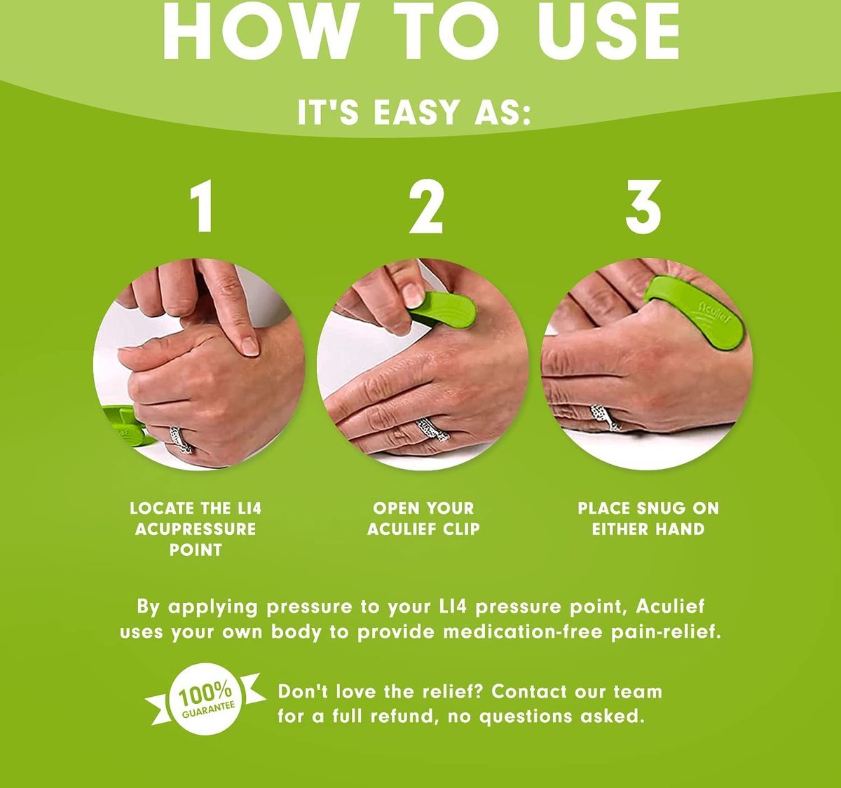 Heb je vaker last van hoofdpijn? En wil je op een natuurlijke wijze van je hoofdpijn afkomen? Daar is deze draagbare acupressuur clip perfect voor. De acupressuur clip, is gebaseerd op de traditionele chinese geneeswijze. Al duizenden jaren wordt het LI4 acupunctuur-punt, gebruikt als een effectief acupunctuurpunt voor onmiddellijke pijnverlichting. De acupressuur clip oefent constante druk uit op het LI4 acupressuur-punt. Hierdoor worden onevenwichtigheden in het hele lichaam verminderd en word je natuurlijke levensenergie hersteld.