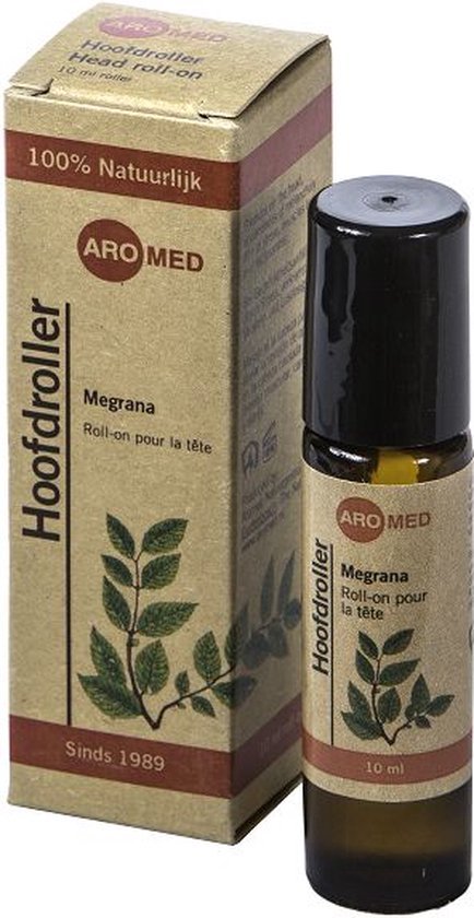 Hoofdklachten kent vele oorzaken en kan allerlei vormen aannemen. De meest voorkomende is spierspanning. Dit wordt veroorzaakt door spanningen van de spieren in je hals, schouders en hoofd. Deze spieren gaan vervolgens aan het botvlies van de schedel trekken. Bij een aanhoudend karakter is er meestal ook sprake van een te grote spanning in de bloedvaten, waardoor er druk ontstaat op de zenuwuiteinden. Megrana Hoofdroller bevat een zeer breed scala aan etherische olin, zodat er bij vrijwel alle soorten hoofdklachten snel verlichting kan optreden.Vele oorzakenZwaarhoofdigheid is geen ziekte, maar een symptoom. De oorzaak is dus ergens anders in je lichaam te vinden. Stress, angst en spanningen zijn belangrijke factoren die dit kunnen veroorzaken. Het kan ook veroorzaakt worden door vermoeide ogen, verminderde nier- of hartfunctie. Een verkeerde houding kan meespelen, maar ook een schommeling van de hormoonspiegel. Verder is bekend dat verhoging, verkoudheid en verstopte neusbijholte of voorhoofdsholte dit kan veroorzaken.Verlichtend en verkoelendMegrana Hoofdroller is een natuurproduct op basis van etherische olin met een brede werking. Het is vervaardigd op basis van Raapolie, Zonnebloem, Amandel, Wintergreen, Menthol, Kamfer, Eucalyptus, Lavendel, Pepermunt, Dennenhars, Rozemarijn en Wilde Marjolein. Migrana Hoofdroller geeft direct verlichting door haar verkoelende werking. Het heeft een ontspannende werking op de verkrampte spieren en verlaagt de druk op het hoofd, zodat de bloedvaten zich weer zullen ontspannen. Ook stimuleert Migrana Hoofdroller de doorbloeding. Daardoor kunnen melkzuren uit de spieren beter worden afgevoerd. Enkele etherische olin zijn eveneens verlichtend.GebruikMegrana Hoofdroller wordt geleverd in een handige roll-on flesje. Hierdoor is het gemakkelijk zuinig aan te brengen langs de haargrens van voorhoofd, slapen, achter oren en nek. Bij lichte druk is 1 maal aanbrengen voldoende. Heeft men hevige of aanhoudende druk dan de handeling 2 tot 4 maal om de 15-20 minuten herhalen en een extra glaasje water drinken.Eigenschappen en inhoud:* Werkt kalmerend en verlichtend* Helpt vastzittende (nek-)spieren te ontspannen* Bevordert de doorbloeding en heeft een verkoelende werking* Dringt door in de dieper gelegen weefsels* Ook aan te bevelen bij kinderen vanaf 4 jaar en tijdens de zwangerschap* Ingredinten: Raapolie, Zonnebloem, Amandel, Wintergreen, Menthol, Kamfer, Eucalyptus, Lavendel, Pepermunt, Dennenhars, Rozemarijn, Wilde Marjolein* Verkrijgbaar als 10 ml roll-on flacon